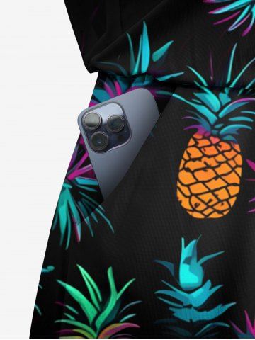 Plus Size Colorful Pineapple Print Hawaii Drawstring Pocket Jumpsuit - Black - Xs