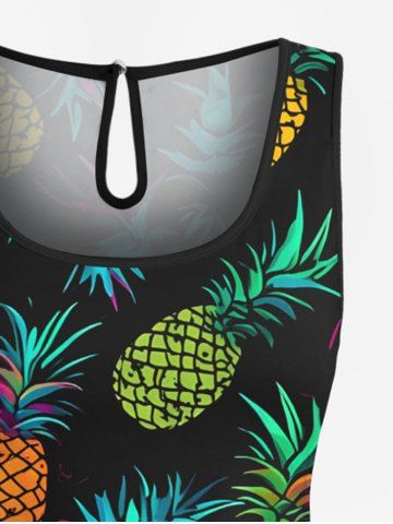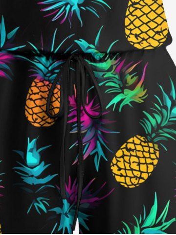 Plus Size Colorful Pineapple Print Hawaii Drawstring Pocket Jumpsuit - Black - S
