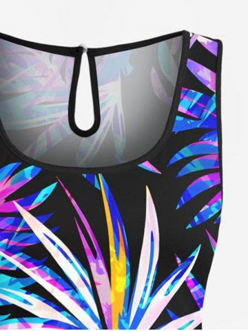 Graphic Pants > Plus Size Colorful Tropical Leaf Print Cinched Hawaii Romper