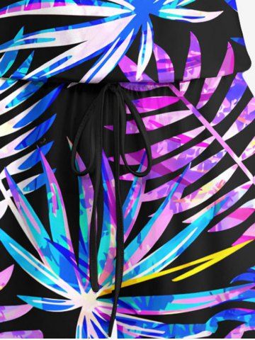 Plus Size Colorful Tropical Leaf Print Cinched Hawaii Romper - Purple - 3x