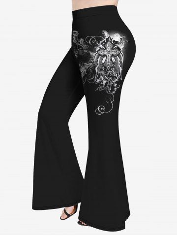 Plus Size Cross Wings Floral Figure Print Flare Pants - Black - 1x