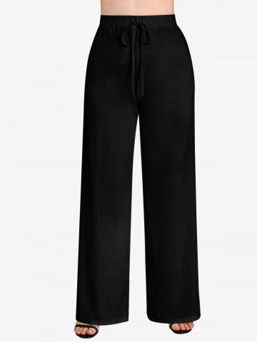 Plus Size Drawstring Solid Wide Leg Pants - Black - 6x