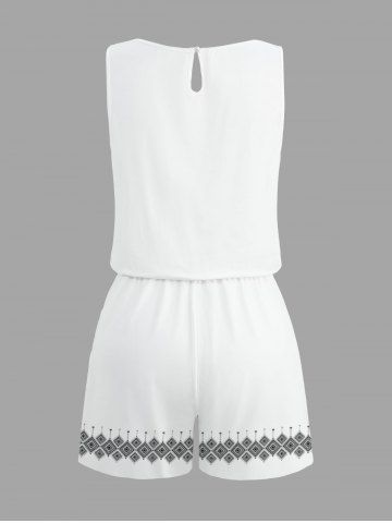 Plus Size Ethnic Pattern Tribal Print Cinched Hawaii Romper - White - L