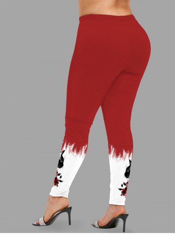 Plus Size Floral Butterfly Cat Print Leggings - Red - L