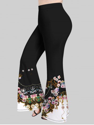 A*****r5Plus Size Flower Chains Gem Colorblock Printed Crisscross Short Sleeve T-shirt and Flare Pants OutfitColor: BLACKReally lovely set. Bought as part of my holiday wardrobe and really happy. Fits well and is super comfy. So lovely to have something nice for the larger ladies xxx