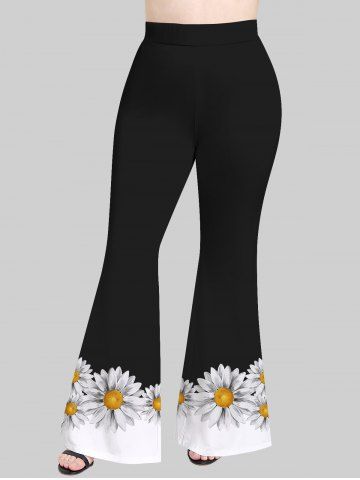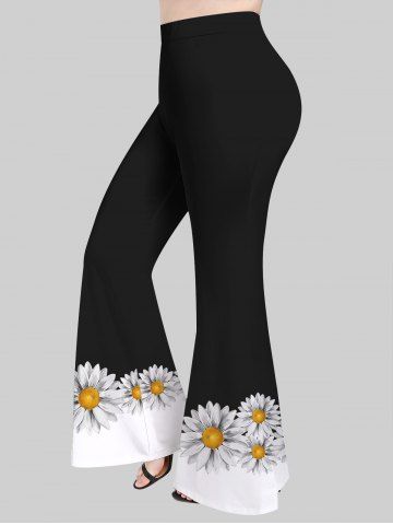 Plus Size Flower Colorblock Print Flare Pants - Black - M