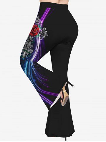 Plus Size Flower Cross Light Beam Print Flare Pants - Black - 4x