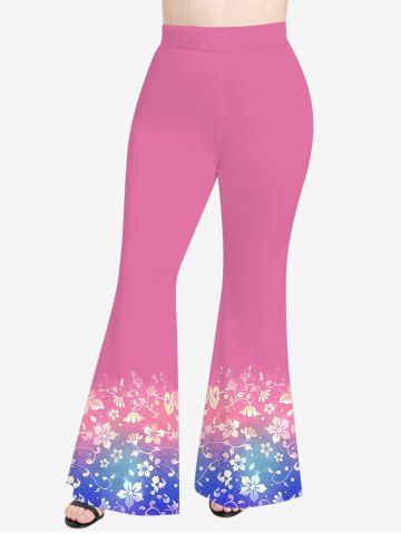 Graphic Pants > Plus Size Flower Galaxy Print Ombre Flare Pants