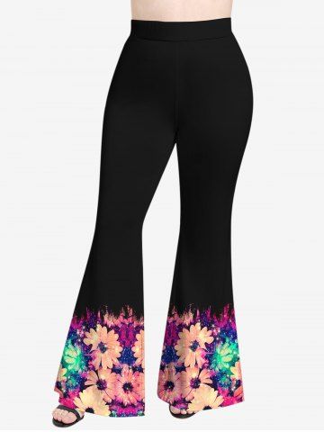 Plus Size Flower Glitter 3D Print Flare Pants - Black - 1x