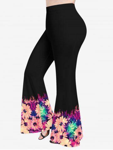 Plus Size Flower Glitter 3D Print Flare Pants - Black - 4x