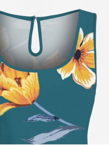 Plus Size Flower Leaf Branch Print Hawaii Drawstring Pocket Romper - Green - 4x