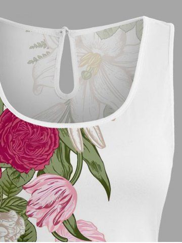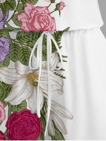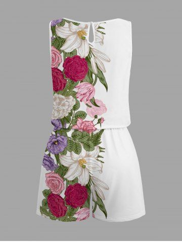 Plus Size Flower Leaf Print Hawaii Drawstring Pocket Romper - White - Xs