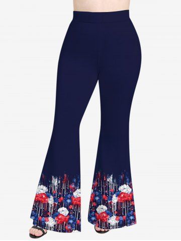 Plus Size Flower Paint Drop Blobs Splatter Print Flare Pants - Midnight Blue - 2x