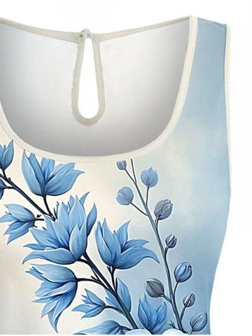 Plus Size Flowers Bowknot Ombre Print Cinched Hawaii Romper - Blue - S
