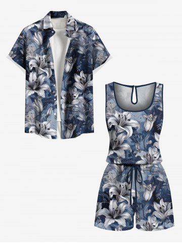 Plus Size Flowers Leaf Ombre Print Cinched Hawaii Romper - Blue - Xxs