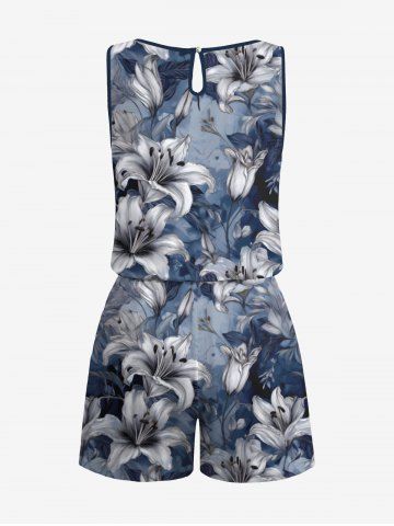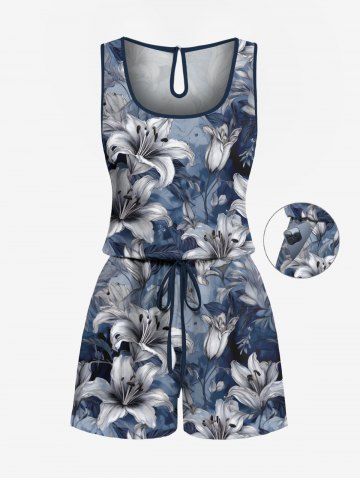 Plus Size Flowers Leaf Ombre Print Cinched Hawaii Romper - Blue - 4x