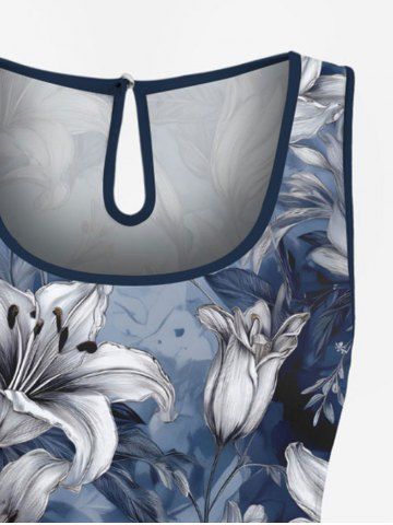 Plus Size Flowers Leaf Ombre Print Cinched Hawaii Romper - Blue - 5x