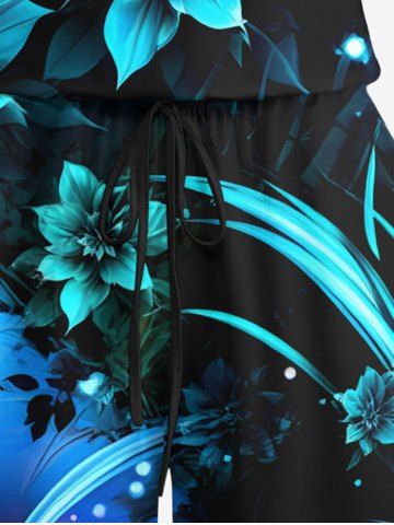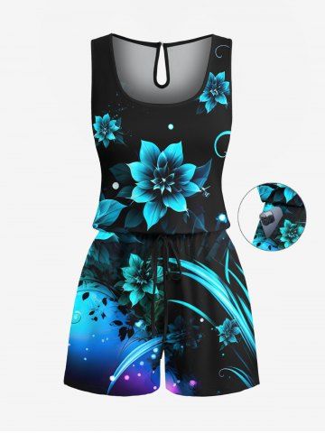 Graphic Pants > Plus Size Flowers Leaf Ombre Print Cinched Hawaii Romper