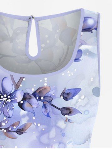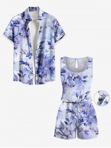 Plus Size Flowers Leaf Print Cinched Hawaii Romper - Purple - 1x