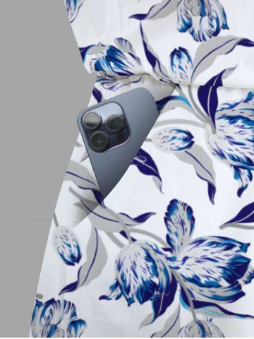 Plus Size Flowers Leaf Print Cinched Hawaii Romper - White - L