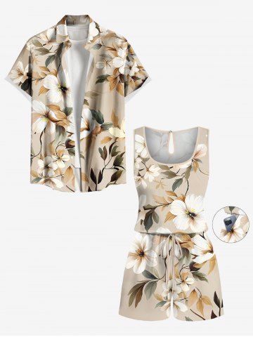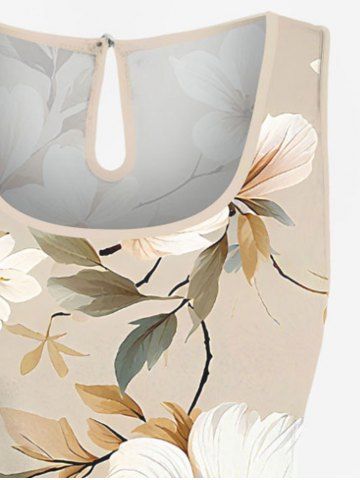 Plus Size Flowers Leaf Print Cinched Hawaii Romper - Light Coffee - 6x