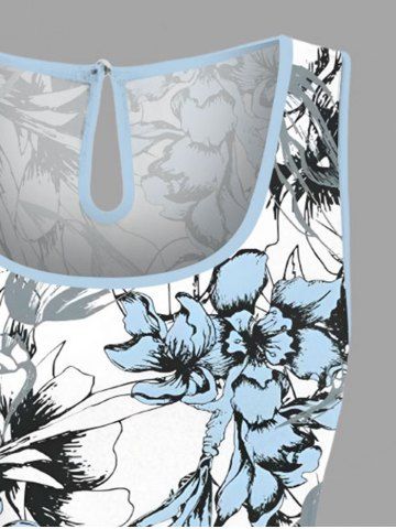 Plus Size Flowers Leaf Print Cinched Hawaii Romper - White - L
