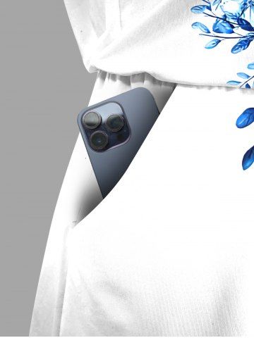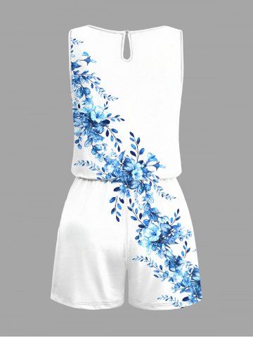 Plus Size Flowers Leaf Print Cinched Hawaii Romper - White - Xs