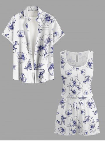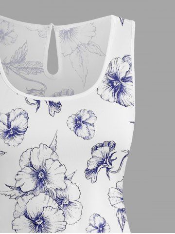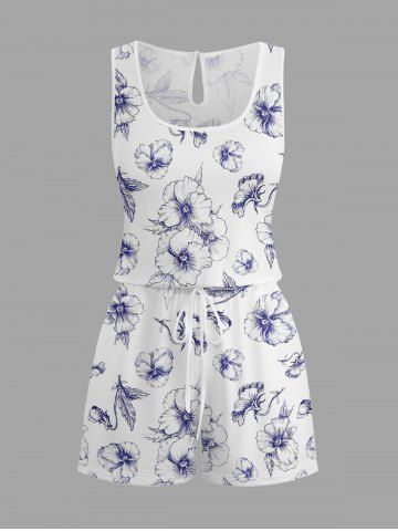 Plus Size Flowers Leaf Print Cinched Hawaii Romper - White - 1x
