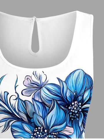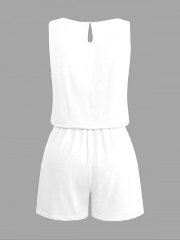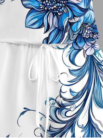 Plus Size Flowers Leaf Print Cinched Hawaii Romper - White - 5x
