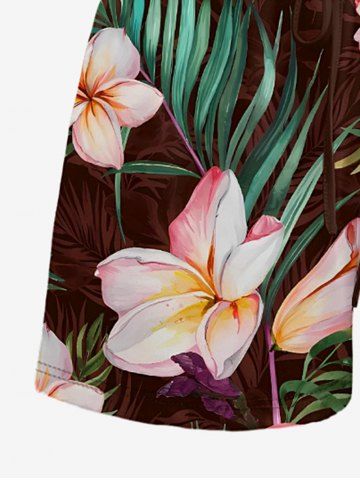 Plus Size Flowers Tropical Leaf Print Cinched Hawaii Romper - Deep Coffee - 6x