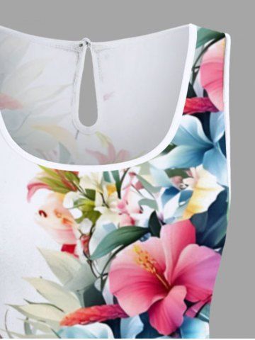 Plus Size Flowers Tropical Leaf Print Cinched Pocket Hawaii Romper - White - 2x