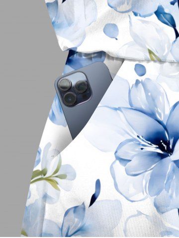 Plus Size Flowers Watercolor Print Cinched Hawaii Romper - White - 5x