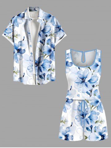 Plus Size Flowers Watercolor Print Cinched Hawaii Romper - White - 6x