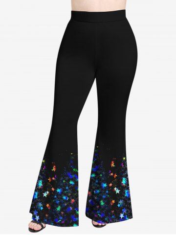 Graphic Pants > Plus Size Glitter Colorful Star Floral Print Ombre Pull On Flare Pants