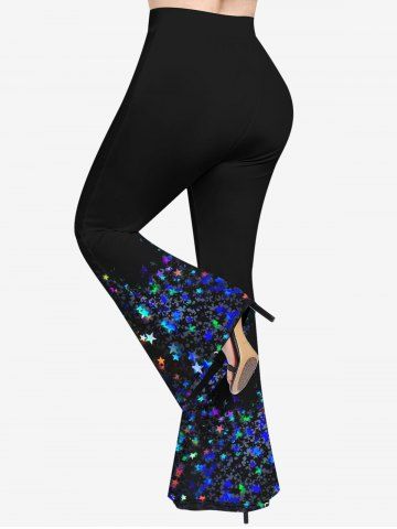 Plus Size Glitter Colorful Star Floral Print Ombre Pull On Flare Pants - Multi-a - 5x
