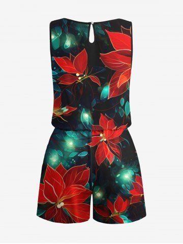 Graphic Pants > Plus Size Glitter Flower Print Hawaii Drawstring Pocket Romper