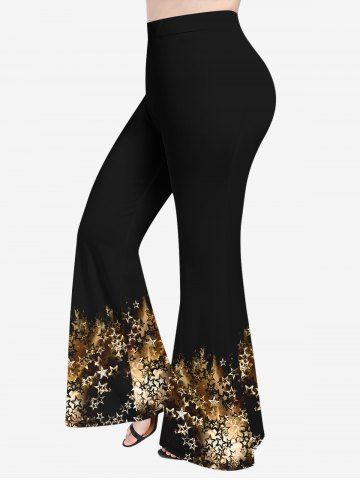 Plus Size Glitter Light Beam Stars Print Ombre Pull On Flare Pants - Black - S