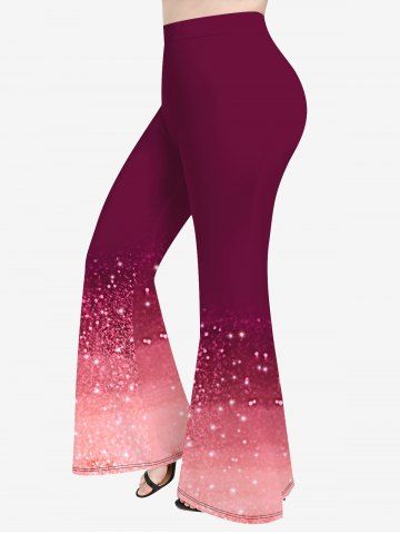 Plus Size Glitter Print Ombre Flare Pants - Red - 4x