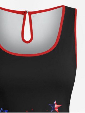 Plus Size Glitter Sequins Patriotic American Flag Print Drawstring Pocket Romper - Black - 3x