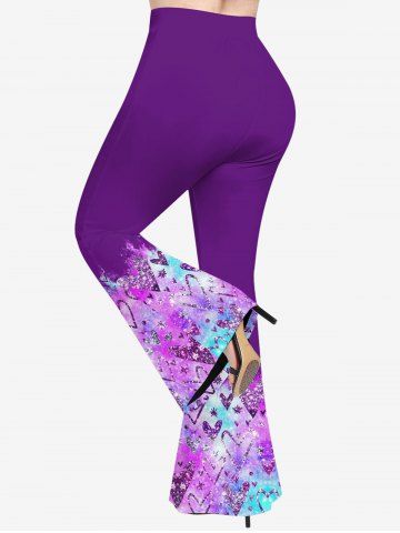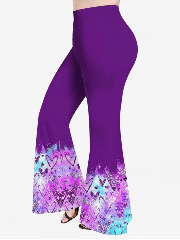 Plus Size Glitter Sparkling Heart Star Sequins Print Ombre Pull On Flare Pants - Purple - 2x