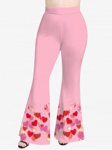 Plus Size Glitter Sparkling Sequins Ombre Heart Print Valentines Pull On Flare Pants - Light Pink - L