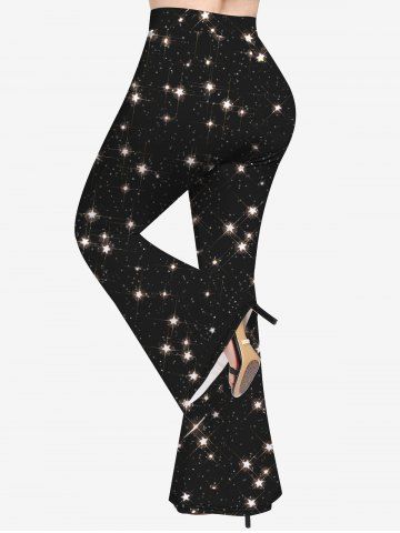 Plus Size Glitter Sparkling Stars Galaxy Print Pull On Flare Pants - Black - S
