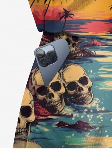 Plus Size Halloween Costume Coconut Tree Skulls Sun Seascape Print Cinched Hawaii Romper - Orange - 2x