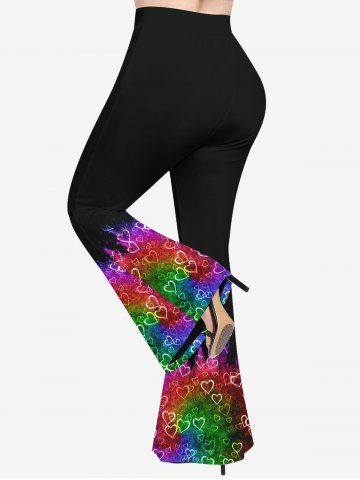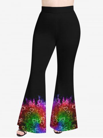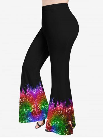 Plus Size Heart Ombre Colorblock Print Valentines Pull On Flare Pants - Multi-a - M