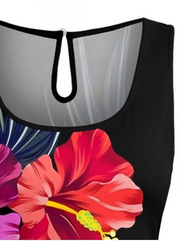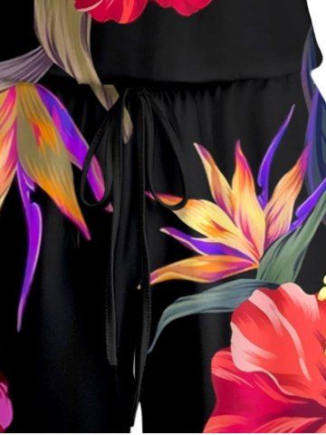 Graphic Pants > Plus Size Hibiscus Flower Leaf Print Cinched Hawaii Romper