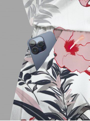 Plus Size Hibiscus Flowers Leaf Print Cinched Hawaii Romper - White - 2x