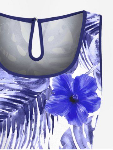 Plus Size Hibiscus Flowers Tropical Leaf Print Cinched Hawaii Romper - Blue - 6x