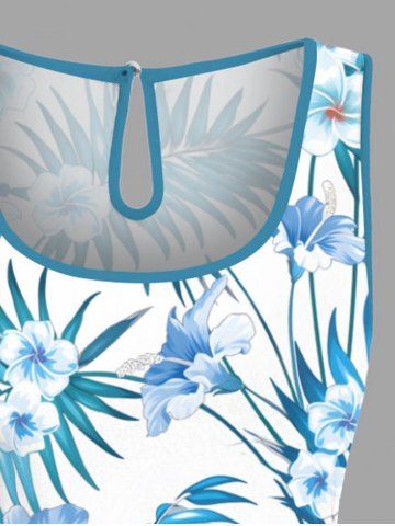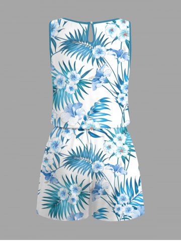Plus Size Hibiscus Flowers Tropical Leaf Print Cinched Hawaii Romper - White - 3x