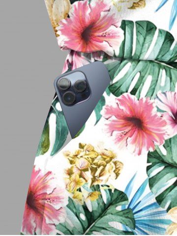 Plus Size Hibiscus Flowers Tropical Leaf Print Cinched Hawaii Romper - White - 3x