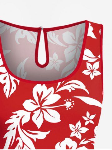 Plus Size Hibiscus Flowers Tropical Leaf Print Cinched Hawaii Romper - Red - 2x